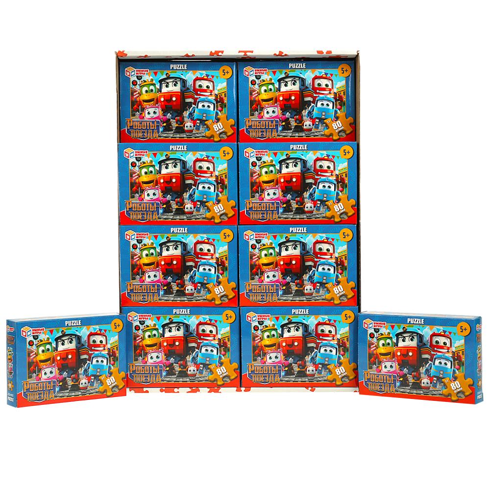 Пазлы классические в коробке. 80 деталей. 130х90х25 мм, 'Роботы-поезда', 368085