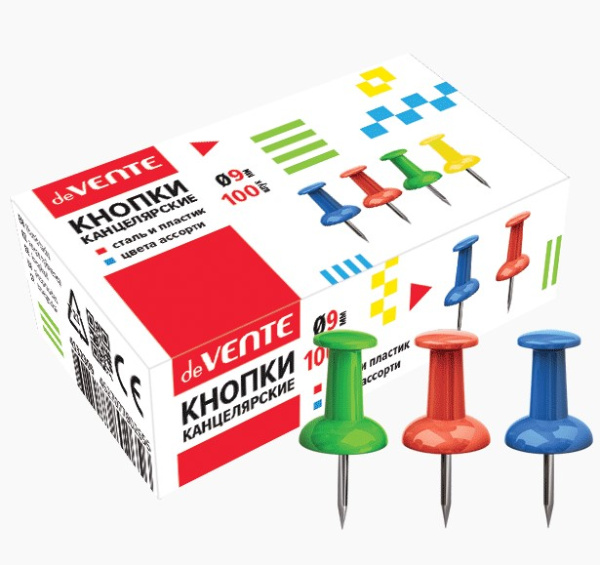 —Кнопки канцелярские силовые 'deVENTE' диаметр 9 мм, цветные в форме гвоздика, (100 шт;уп), 4132309