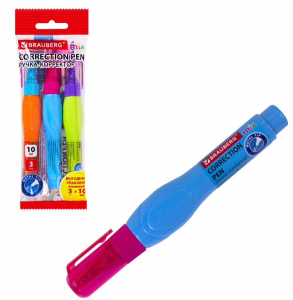 Ручка-корректор Brauberg 10 мл, (3 шт;уп), 271921