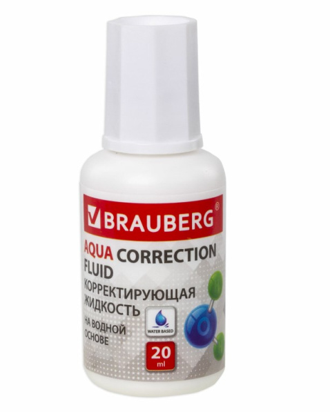 —Корректирующая жидкость BRAUBERG 'Aqua' на водной основе 20 мл, с кисточкой, 228643