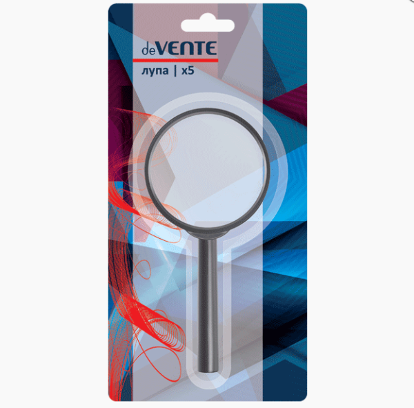 Лупа "deVENTE" с пятикратным увеличением d=75 мм, стеклянная линза, пластиковый корпус, в картонном блистере.