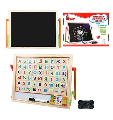 Доска магнитно-маркерная 'KWELT', дерево 32х26 см, буквы, цифры, мелки, К-9429