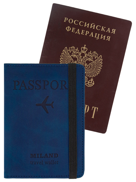 Обложка на паспорт с отсеком для карт на резинке 'Вояж', синий, ОП-9632