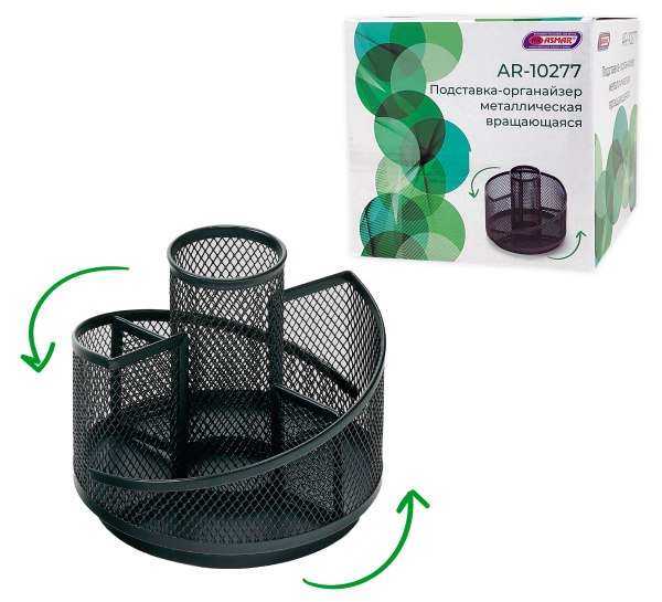 —Подставка - органайзер металлическая вращающая, цвет-черный, AR-10277