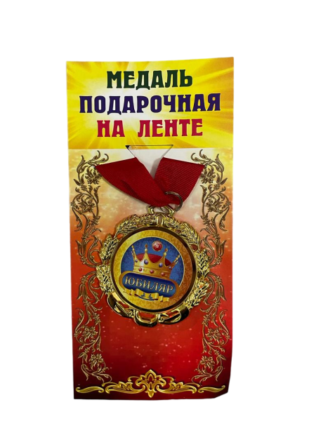 —Медаль подарочная на ленте металлическая Юбиляр D=6,5 см.