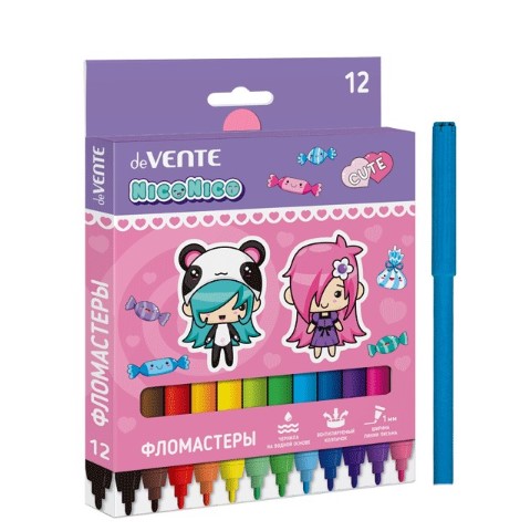 —Фломастеры 'deVENTE. NicoNico--)', 12 цветов с вентилируемым колпачком, 5081346