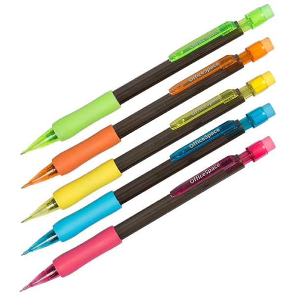 —Карандаш механический OfficeSpace 0,7мм, грип, с ластиком, ассорти, XP820C_3620