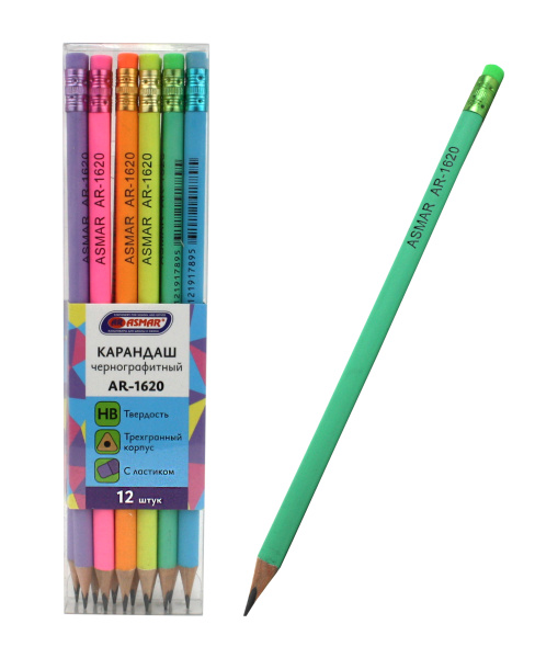 —Карандаш чернографитный с ластиком, трёхгранный, НВ, AR-1620