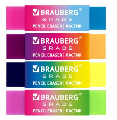 Ластик полупрозрачный, 'BRAUBERG', GRADE, 60х15х10 мм, картонный держатель, ассорти цвета, 271997