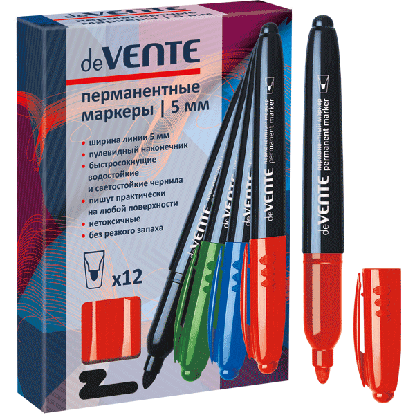 —Маркер перманентный 'deVENTE', круглый корпус , 5 мм пулевидный наконечник, красный цвет, 5043736