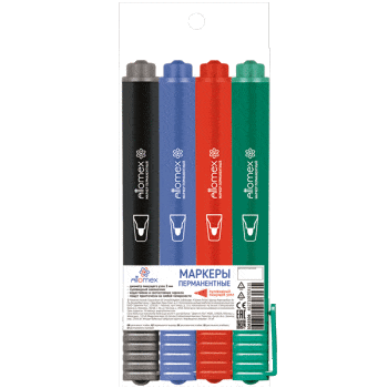 —Набор маркеров перманентных Attomex 3 мм, 4 цв, круглый корпус пулевидный наконечник, 5043504