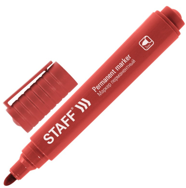 Маркер перманентный STAFF 'Basic Budget PM-125', КРАСНЫЙ, круглый наконечник 3 мм, 152176