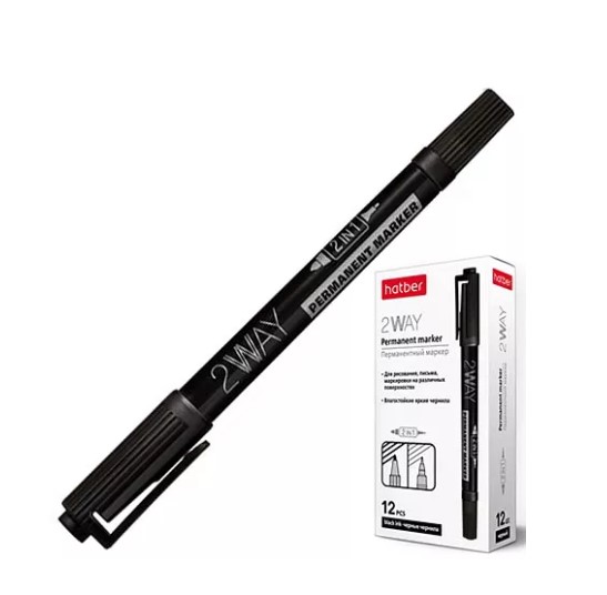 —Маркер Hatber '2way' черный, 0,5-1 мм, двухсторнний пулевидный, РМ_060847