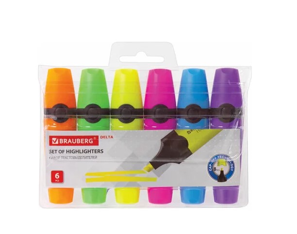 —Набор текстовыделителей BRAUBERG DELTA, 6 шт, АССОРТИ, линия 1-5 мм, 151728