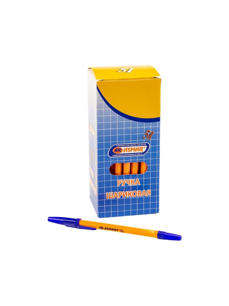 РУЧКА 'ШАРИКОВАЯ СИНЯЯ, ОРАНЖЕВЫЙ КОРПУС, AR-51;СИНЯЯ