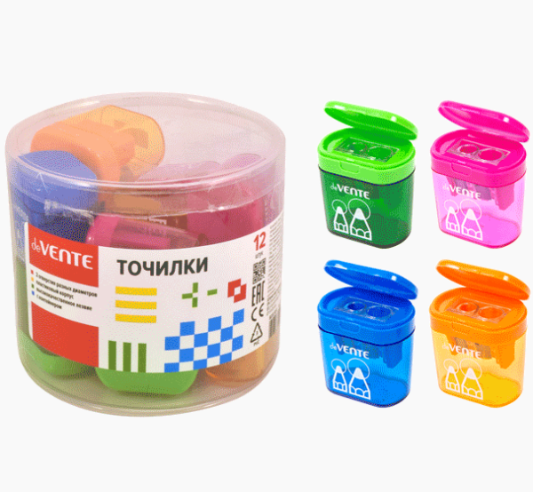 —Точилка для карандашей 'deVENTE' 2 отверстия разных диаметров, с контейнером, пластмассовая, 8031914