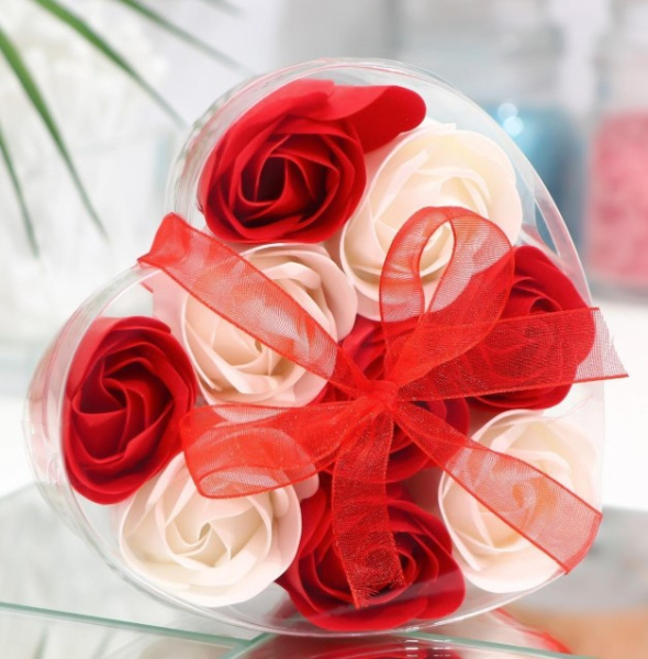 —Мыльные розочки, красные и белые, набор (9 шт;уп), 6962276