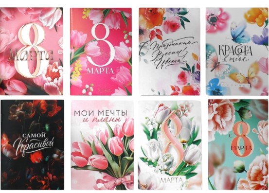 —Набор блокнотов А6, 32 листа на скрепке 8 шт 'С 8 марта. Тюльпаны', 10047274