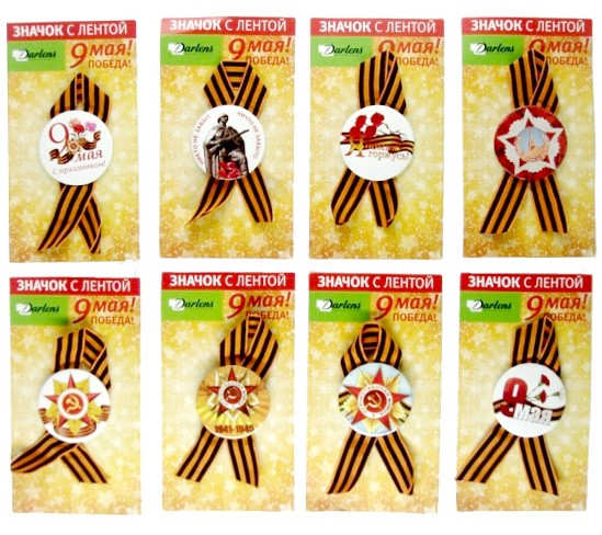 —Значок 9 мая 'DARLENS', с георгиевской лентой, на подложке, DL-ZNK00001