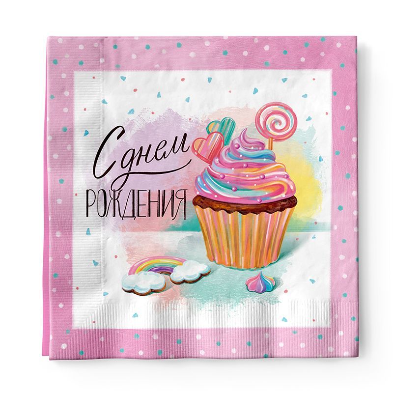 —Салфетка 'Сладкий День Рождения' 33 см , (12 шт;уп) , европодвес, 703020