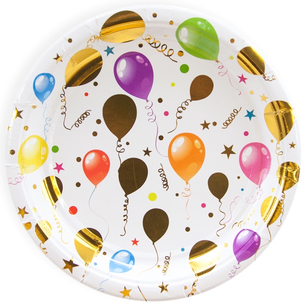 —Тарелки (9'';23 см) Воздушные шарики, разноцветный металлик, (6 шт;уп), 6231910