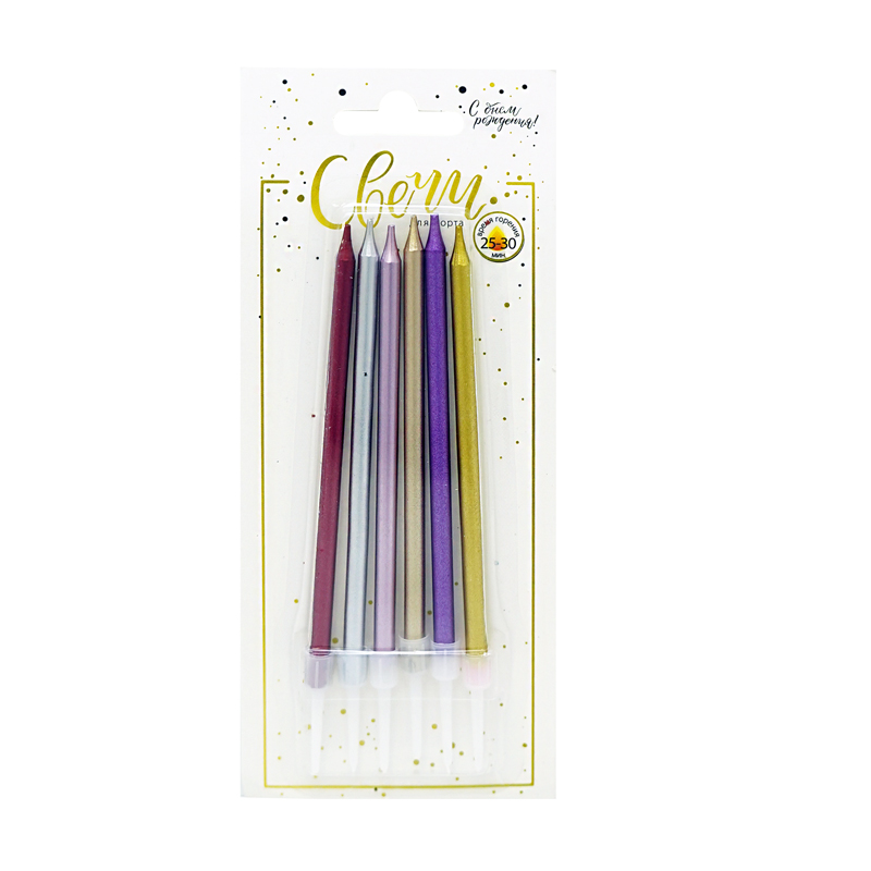 —Свечи тортовые классические 'Металл' Макаронс (ассорти) с держ, 6 шт;10 см, 183552