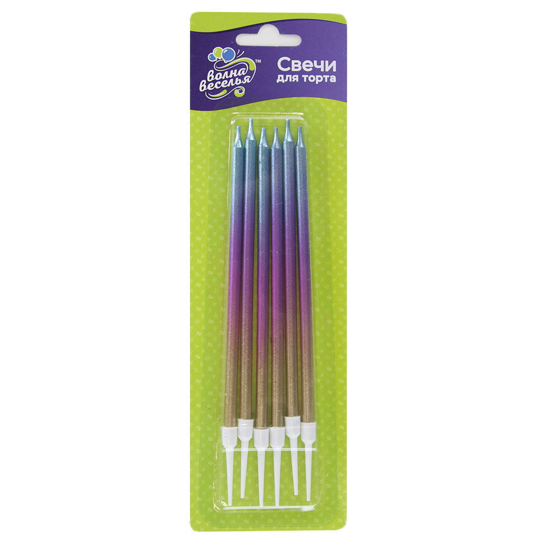 —Свечи Яркое сияние, Градиент, 0,55~14,5 см, 6 шт. с держат., 183549