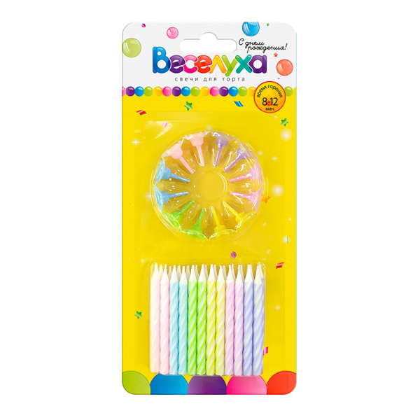 —Свечи для торта с подставками Веселуха 'Макаронс Классические', ассорти, 24 шт, 6 см, 620003-Р