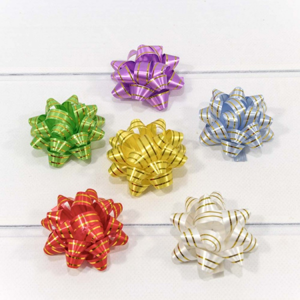 —Бант-звезда OMG 'Золотая полоска' 6,3 см, 40 шт, на липучке, ассорти, OM500560-25