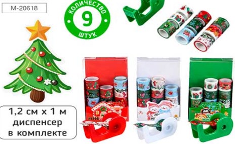 —Набор декоративных клейких лент, 9 шт, 1.2 см х 1 м, диспенсер в комплекте, M-20618