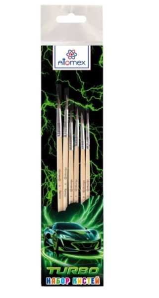 —Набор кистей 'Attomex. Turbo' 06 шт (белка № 1, 2, 3, 4, 5, 6) деревянная ручка, 8072539