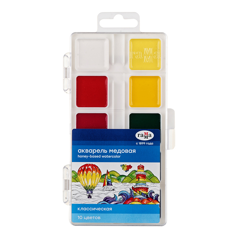 —Акварель Гамма 'Классическая', медовая , 10 цветов , без кисти , пластик. упак, 1009193