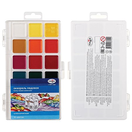 Акварель Гамма 'Классическая', медовая , 18 цветов , без кисти , пластик. упак, 1009196