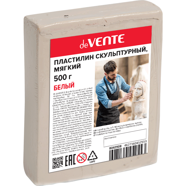 —Пластилин скульптурный 'deVENTE' белый, 500 г, пленка, мягкий, 8042908