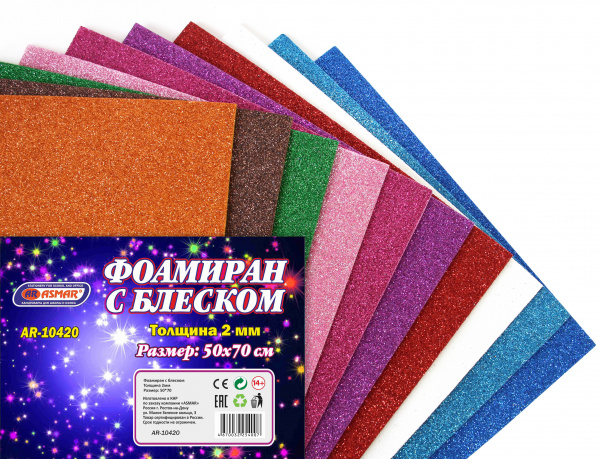 —Фоамиран 2 мм, 50х70 см., с блёстками, 1 лист, в асс.,AR-10420