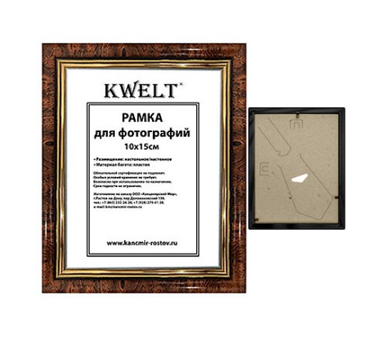 —Фоторамка 'KWELT', 10х15 см, пластиковая, серия 5, темный орех,стекло, 582;10х15