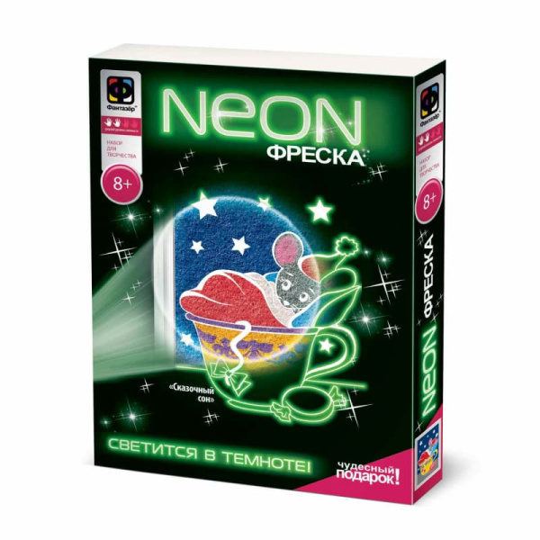 —Фреска из песка неоновая Фантазёр 'Спящий мышонок', картон. уп., 430021
