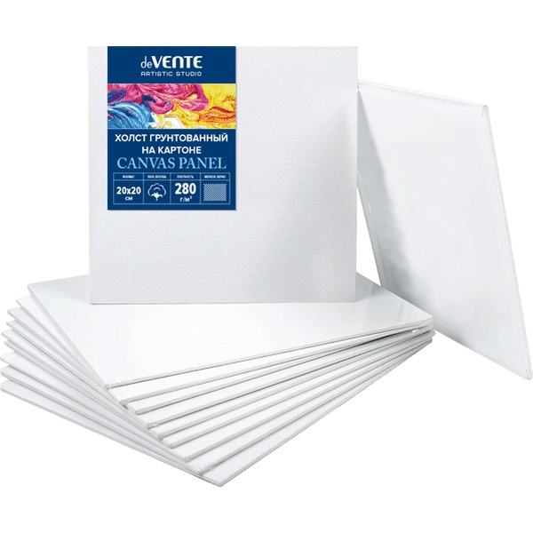 —Холст на картоне 20x20 см грунтованный 'deVENTE. ARTISTIC STUDIO' 100% хлопок 280 г;м², 8150302