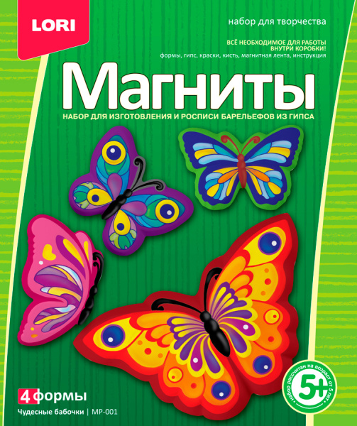 —Магниты из гипса LORI 'Чудесные бабочки', 4 формы, картон. уп., МР-001