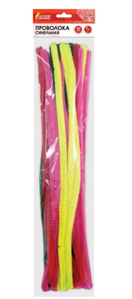 —Проволока синельная для творчества 'Пушистая', 6 цв, 30 шт, 0,9х30 см, ОСТРОВ СОКРОВИЩ, 661530