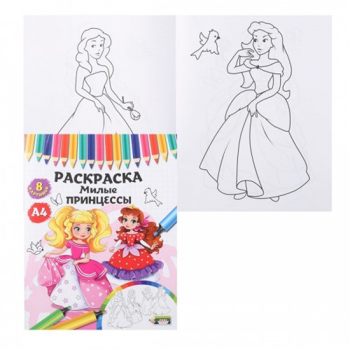 —Раскраска А4 Prof-Press 'Милые принцессы', 4 листа, 8 картинок, Р-4534